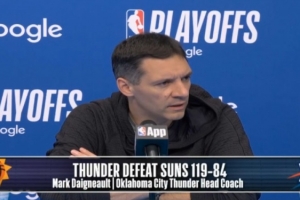 体育资讯4月20日讯 NBA季后赛西部首轮G1,雷霆119-84大胜太阳35分,戴格诺特赛后接受了媒体采访,以下是完整采访内容。