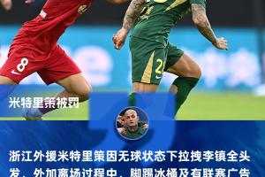 中超第4轮浙江队主场0-1重庆铜梁龙比赛,第88分钟,米特里策因拉拽铜梁龙中场李镇全头发,而被当值裁判员出示红牌罚出场。